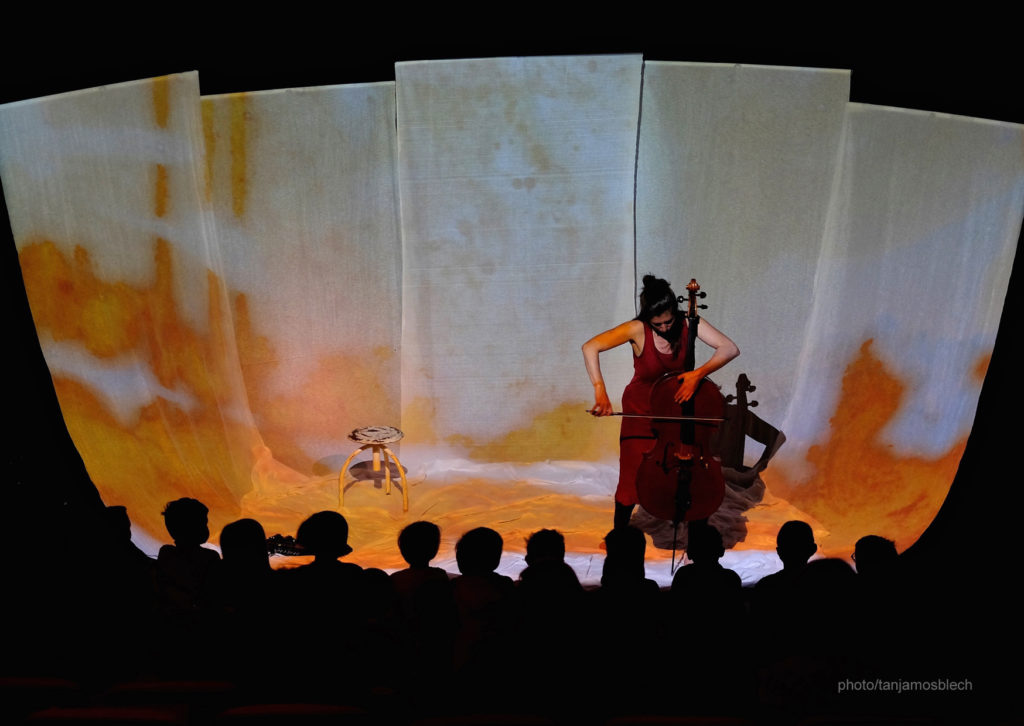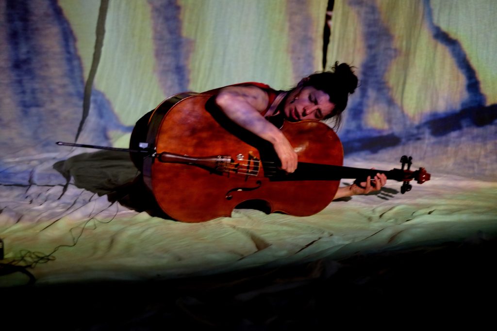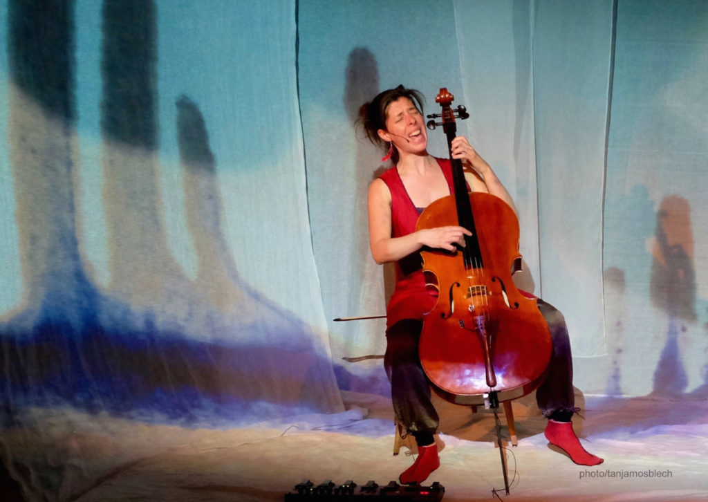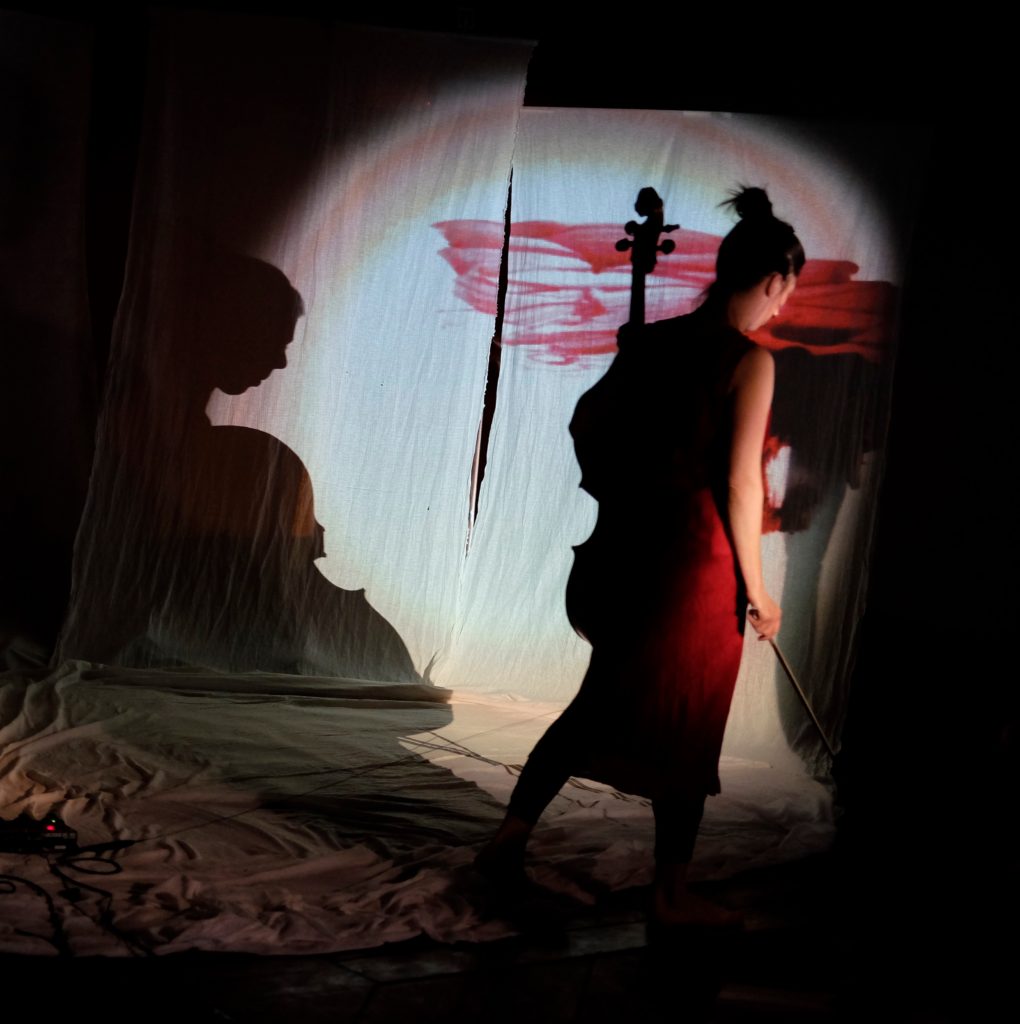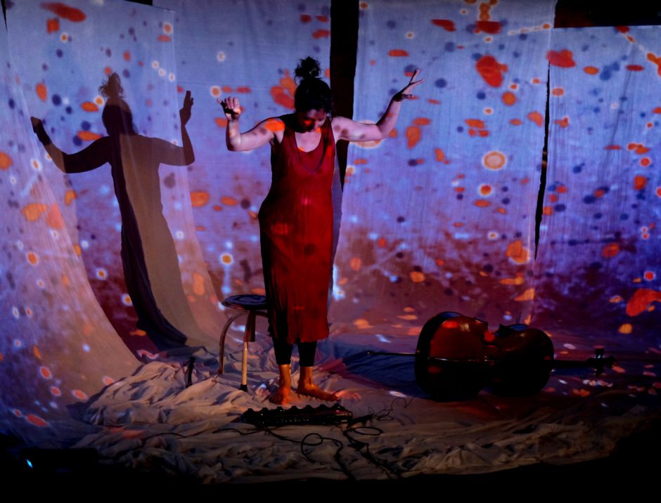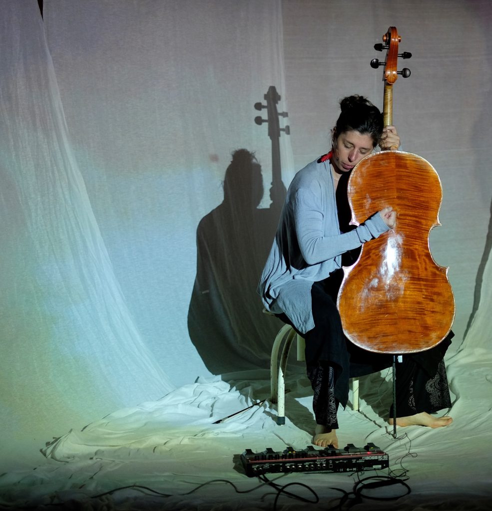 Violoncelle, voix, entrelacs de sons et rythmes, projections couleurs et lumières