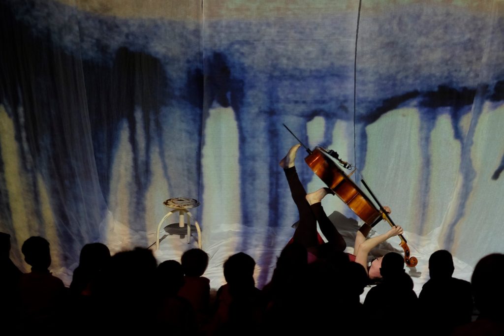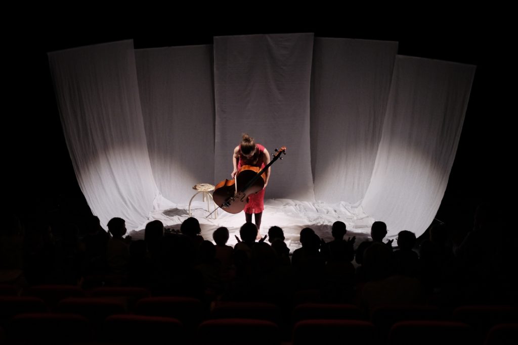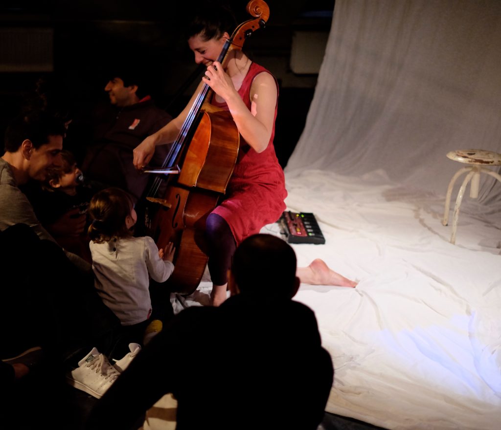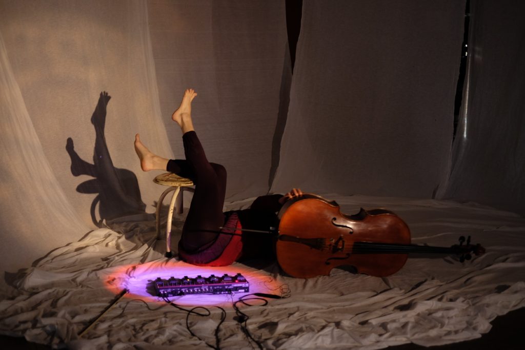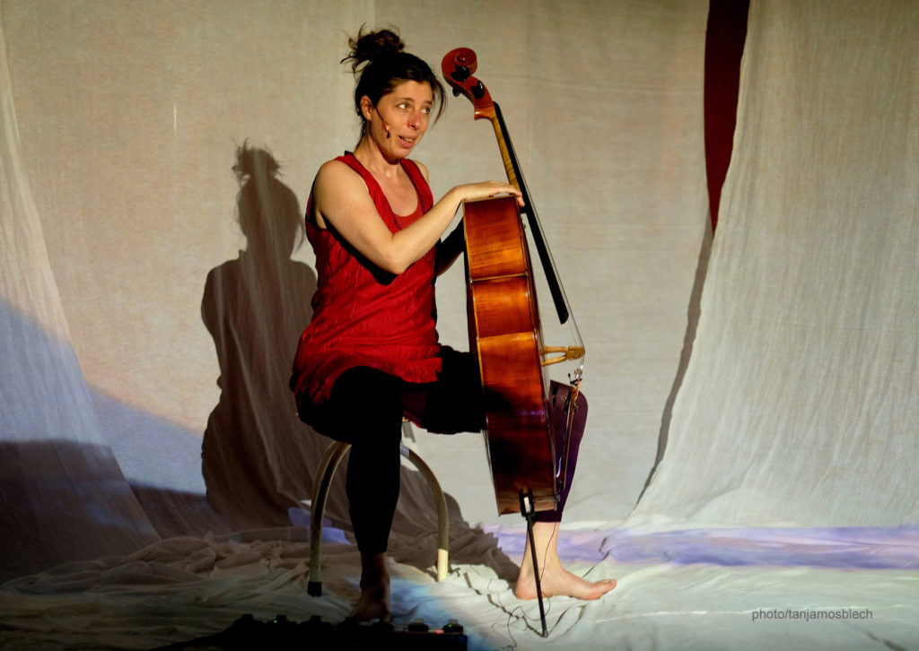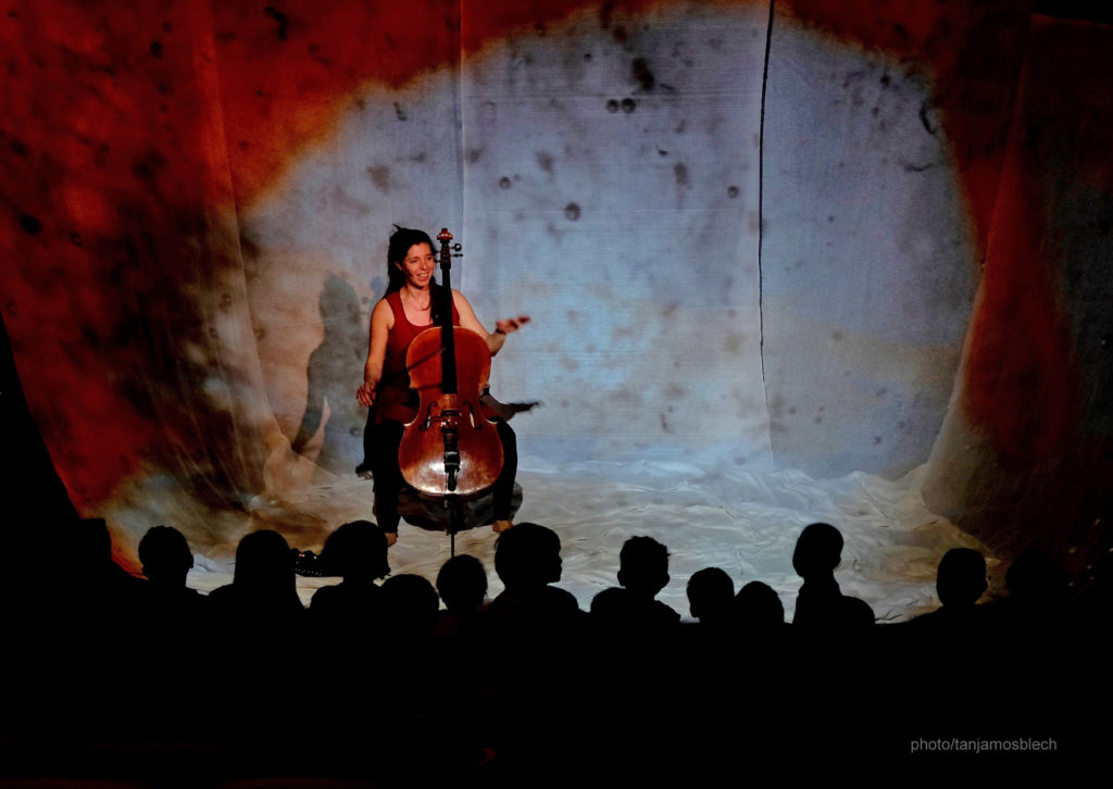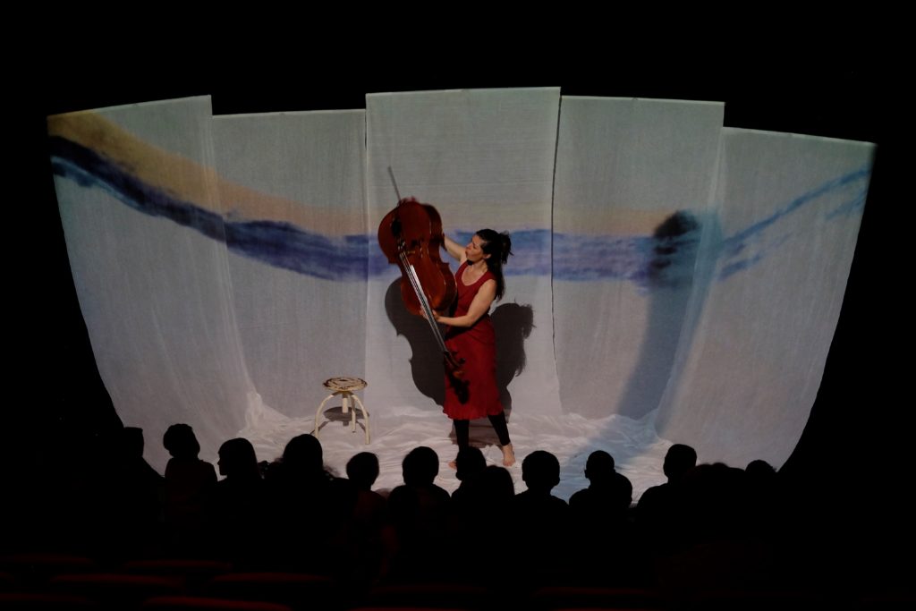 Violoncelle, voix, entrelacs de sons et rythmes, projections couleurs et lumières
